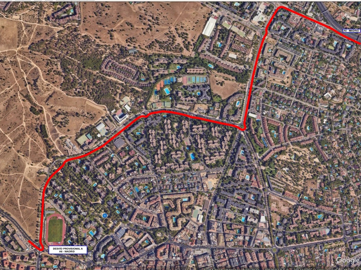 El Desvío propuesto se inicia desde la rotonda a la altura del enlace de la Carretera de Villanueva del Pardillo (M-509) con la Avenida de Guadarrama, continuando por esta Avenida en sentido Madrid hasta el cruce con la Avenida la Reyes Católicos para continuar por la M-515 en el termino de las Rozas hasta la Carretera del Escorial (M-505 ) y por la vía de servicio o el BUS VAO enlazar con la Carretera de la Coruña (A-6)