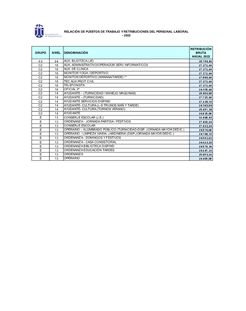 Relación puestos de trabajo del personal laboral 2022 en formato PDF