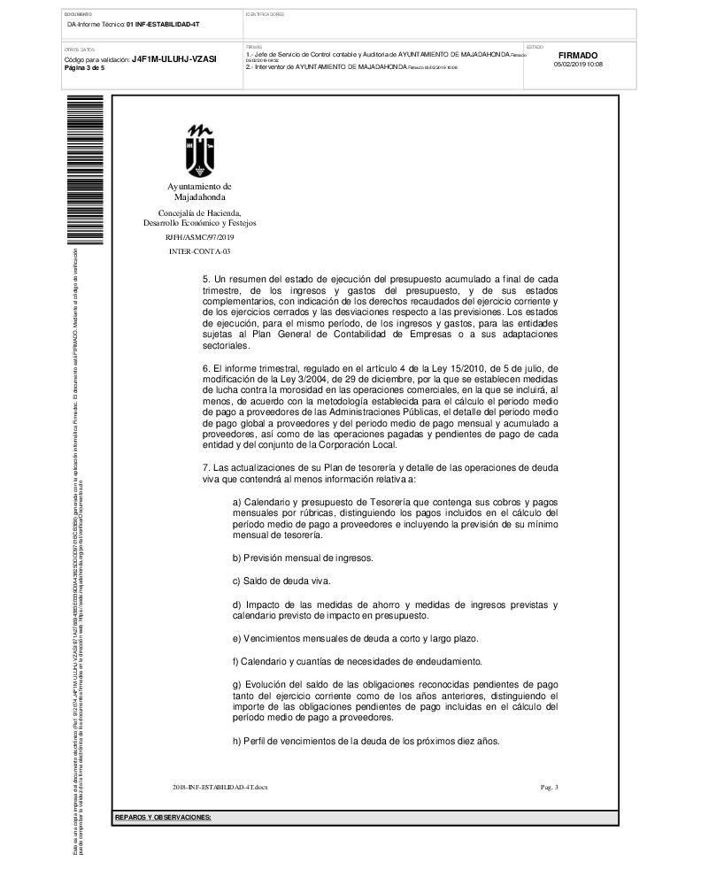 INFORME DE INTERVENCIÓN