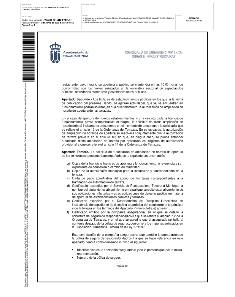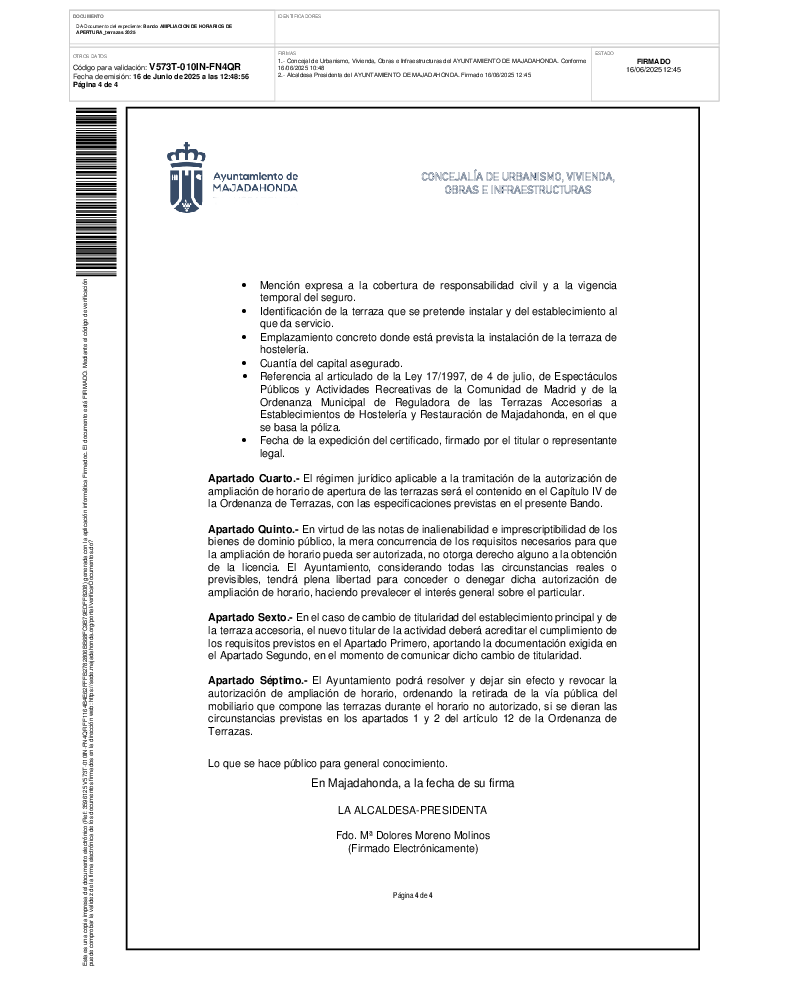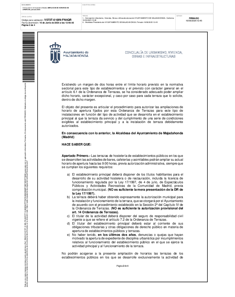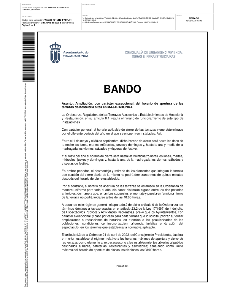 Ampliación excepcional del horario de apertura de terrazas (16/06/2025)