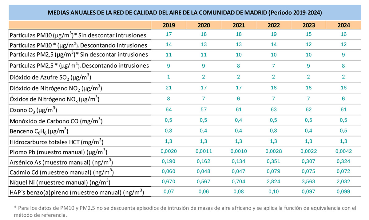 La Comunidad de Madrid publica anualmente un informe resumen de los valores límite, umbrales y objetivos para garantizar la Calidad del Aire.