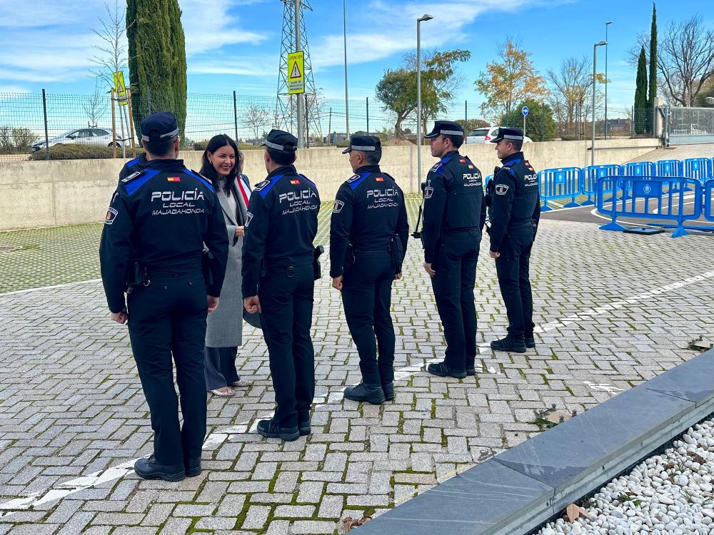 La alcaldesa de Majadahonda, Lola Moreno, ha saludado esta tarde a los nuevos oficiales de la Policía Local, acompañada del concejal de Seguridad, Antonio Rodríguez; el Primer Teniente de Alcalde, Diego López del Hierro y el jefe de la Policía Local, Ismael Illán.