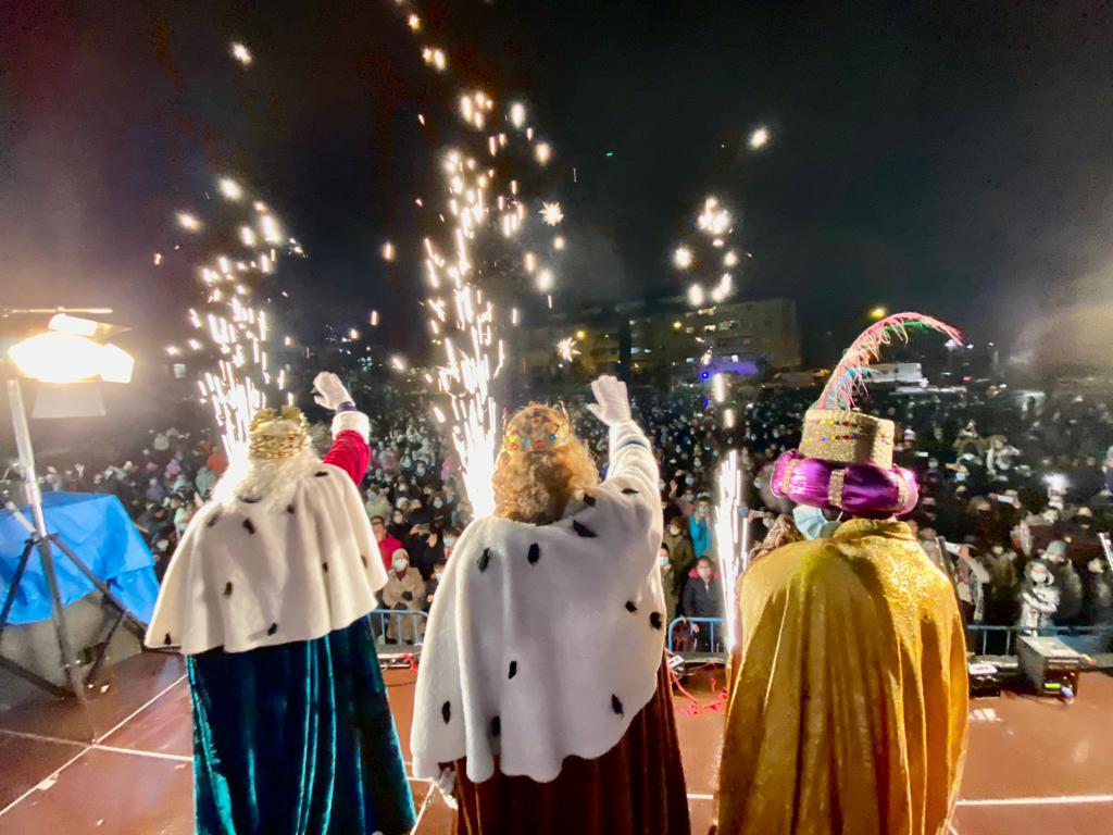 Sus Majestades los Reyes Magos de Oriente han repartido esta noche toneladas de ilusión y caramelos a los niños de Majadahonda que, a pesar de la lluvia, han disfrutado de su paso por las calles de la ciudad. Así, la comitiva, que arrancó a las 18:30 horas de la Avenida de Guadarrama, la abrían un total de 150 ocas y tras ellas seis carrozas inspiradas en literatura infantil, nueve pasacalles y, por supuesto, los tronos reales.
