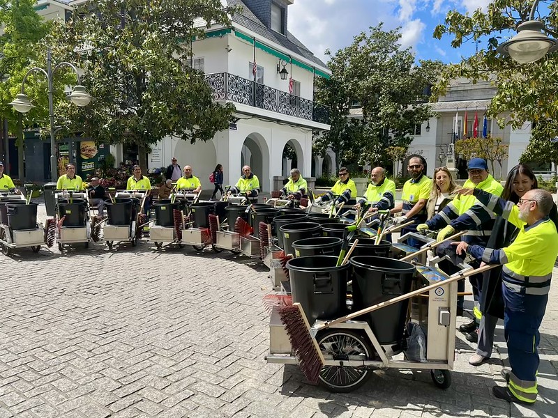 El Ayuntamiento de Majadahonda ha puesto en servicio 12 nuevos carros barrenderos con propulsión eléctrica. Los vehículos, destinado principalmente a los servicios de barrido manual, cuentan con un apoyo eléctrico para facilitar al operario el traslado del carro, minimizando el esfuerzo que realiza al empujar la carga, consiguiendo una rodadura ligera y cómoda y una mayor productividad.